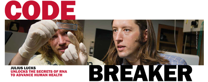 The Lucks Lab is featured in the recent Cornell Engineering Magazine. The article, entitled ‘Code Breaker’, delves into the lab’s quest to unlock the secrets of RNA molecules to both understand and engineer living systems. The article also dives into some of the twists and turns in Julius’ career trajectory, including how he has overcome some of the challenges of research he encountered along the way.